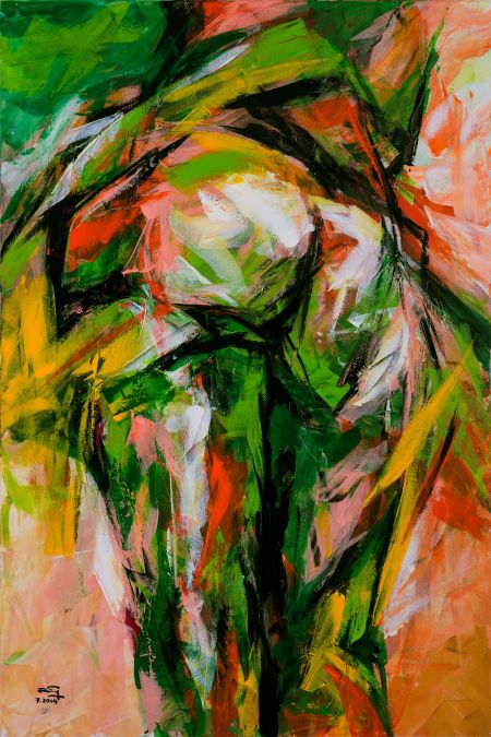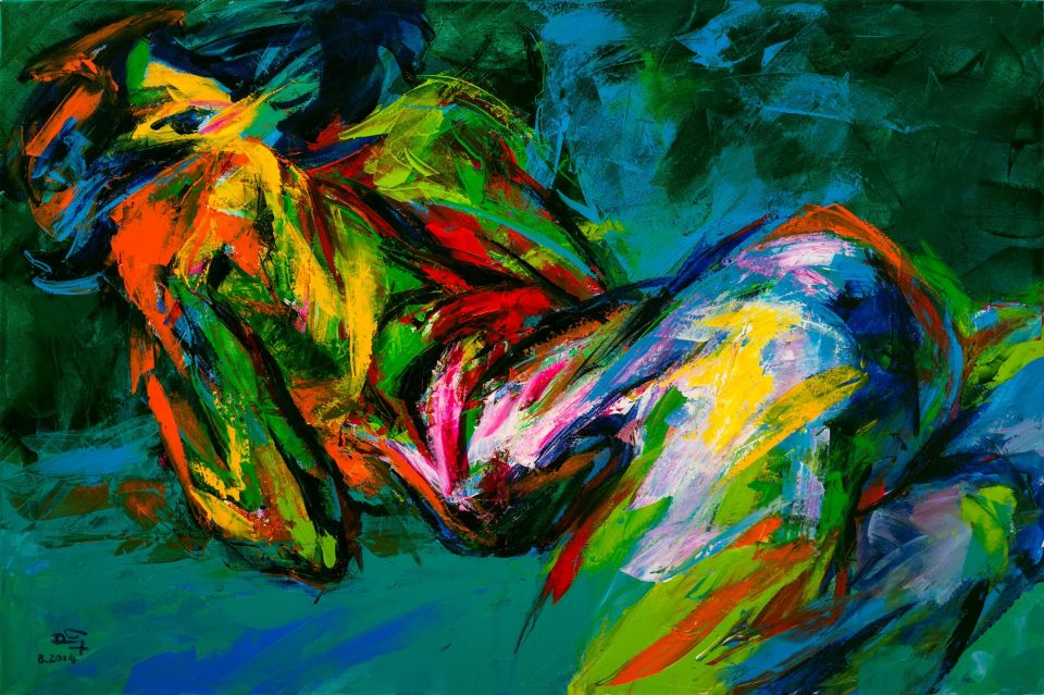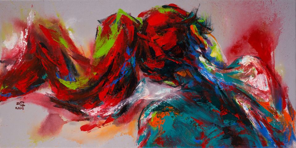 Mit den Frauenkörper kann ich meinen emotionalen Zustand und meine Gedanken über die Bewegung der Farben ausdrücken.